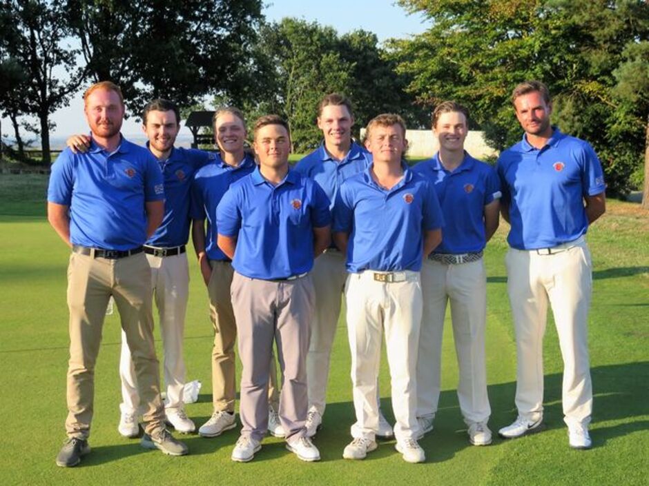 There was some superb golf played all afternoon by both teams and it was played in fantastic spirit throughout. Kent took the top two matches leaving us in a bit of a hole and with Harley's opponent birdieing the last for a half we needed a strong middle and back of the team performance. Match 4 also went to Kent on the final hole so we owed a lot to Henry, Mitch and Charlie who all won to level proceedings again, we now need 2 out of the final 3 matches, with Charlie holding a good advantage all the way to a strong 5&3 victory we were in sight of the finishing line. It was down to County captain Ben Humphrey to bring home the bacon and secure the winning point on the 16th green and an 8-7 victory.