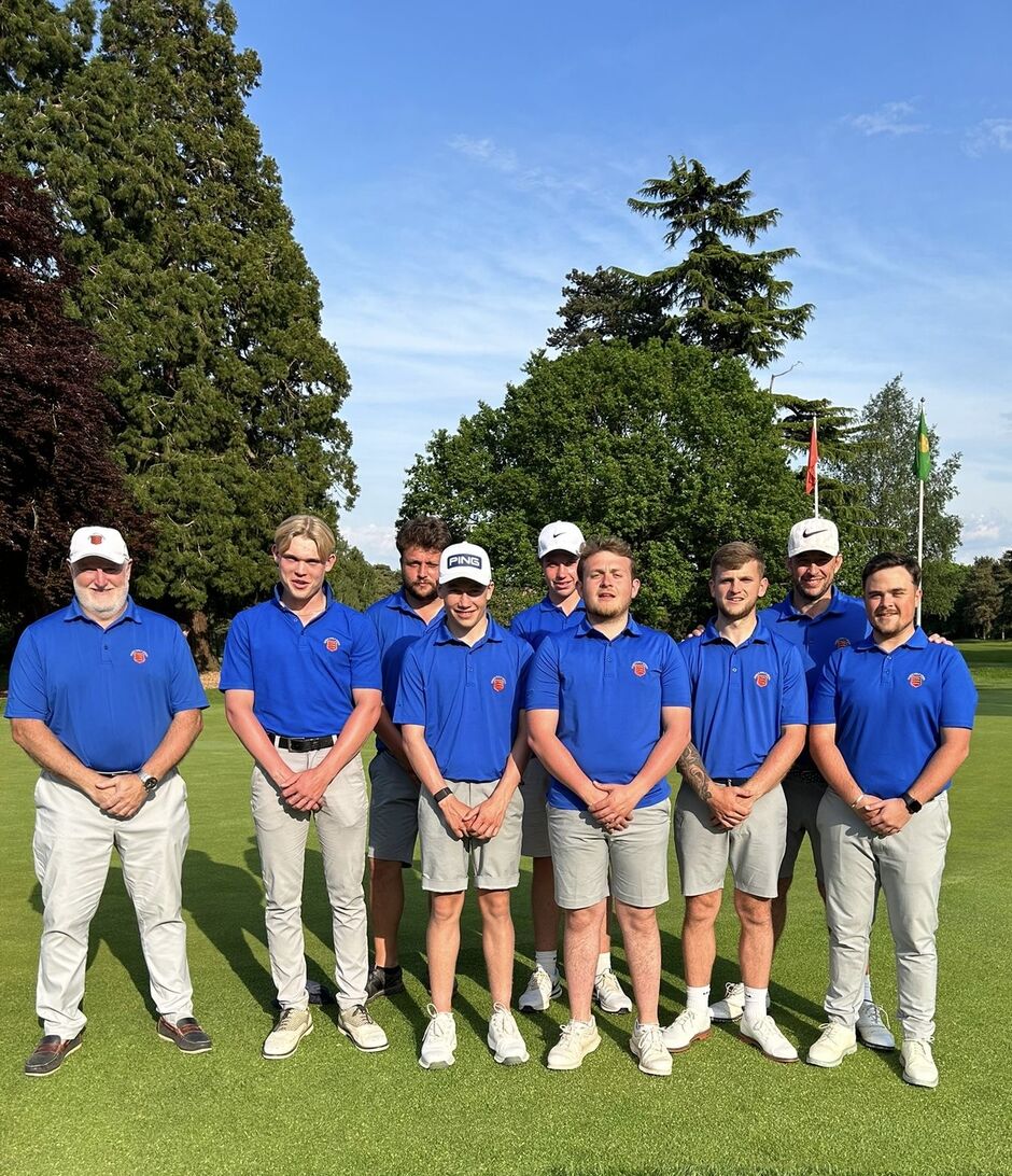 We arrived at Dartford GC on a sunny but fresh spring morning ready for our match against Kent. We knew we were in for a very competitive game against the team that won the South region 6man qualifier in 2023 and boasted a number of top national performers in their ranks. Zach Chegwidden & Henry Styles led the team off and produced some excellent foursomes golf to gain a comfortable win. Next out were Ollie Allison, making his debut & Shay McQueen who were beaten 3&2. Harley Smith & Charlie Rusbridge halved with Kent's county captain and his partner and would have won if a number of putts had not sat on the lip of hole on too many occasions to count. Captain Ben Humphrey & the returning Mitch Sarling had a very good win in match 4 and Ollie Baker, also making his debut & Charlie Croker could not overcome a slow start and eventually went down to defeat on the 16th green. The match was nicely poised at 2.5-2.5 as we sat down for lunch. The team were confident heading out for the singles, all the players had now seen the golf course, with many having never played it and the wind had died down a touch.