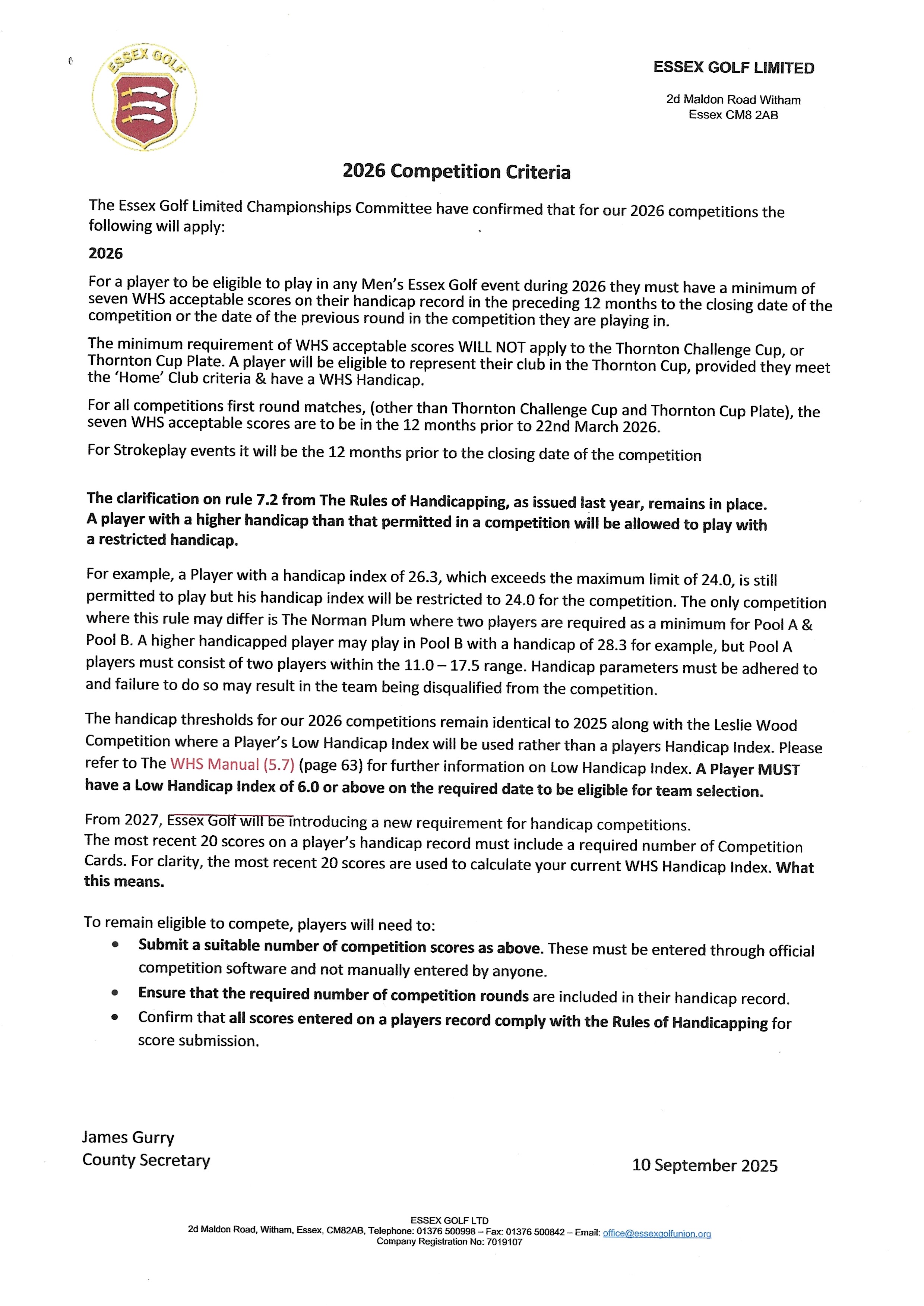 Men's Handicap Criteria 2026 - Click the image to open the PDF