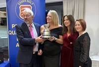Competition winners from across Essex were recognised and presented with their trophies. Sadly, not many ELCGA winners were there this year but the ladies from The Rayleigh Club more than made up for it – here they are proudly receiving the Harris Bowl from Steve Clarke Essex Golf President Elect.
