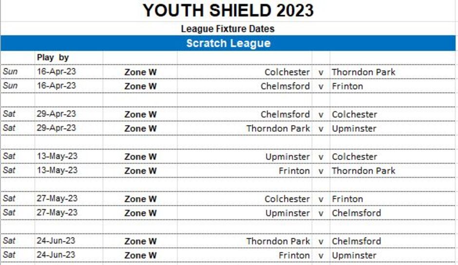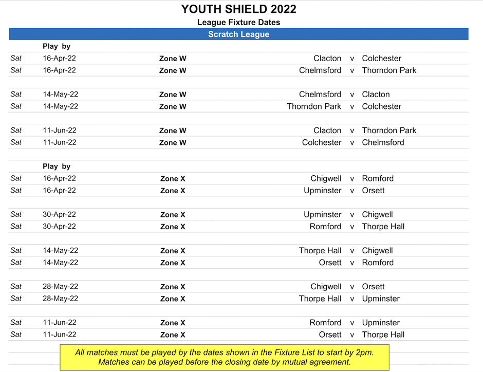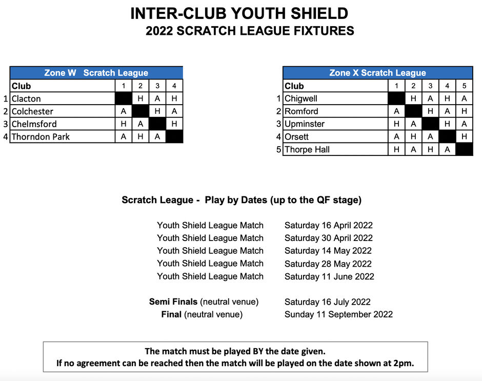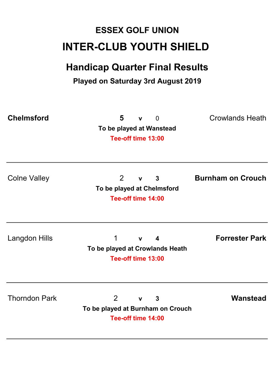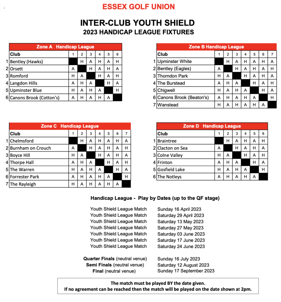 INTER-CLUB YOUTH SHIELD (HANDICAP)FINALBurnham on Crouch v FrintonHosted by Brentwood Golf Club Sunday 15th September 2024