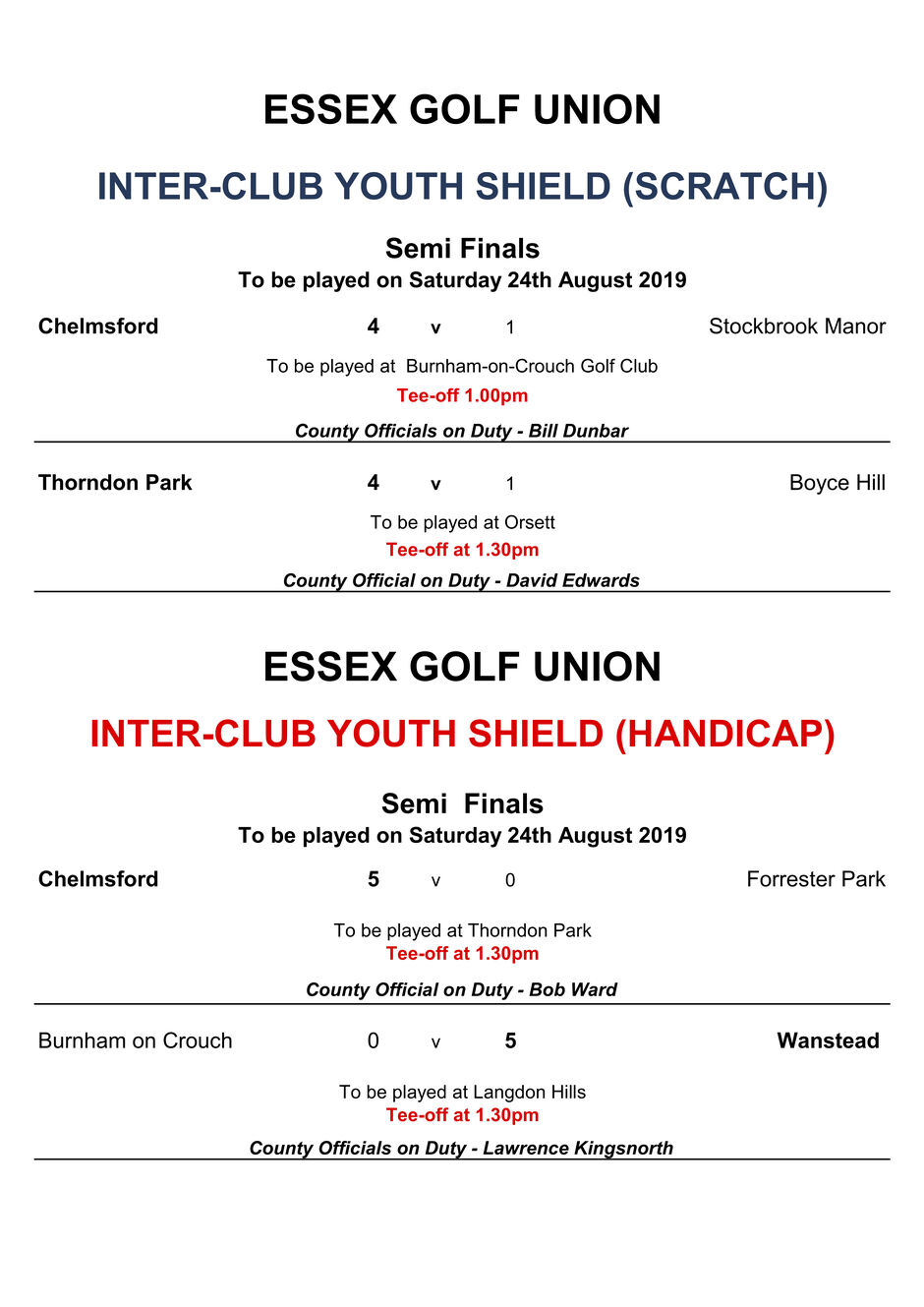 Youth Shield 2018Finals played at Clacton Golf Club 16th September